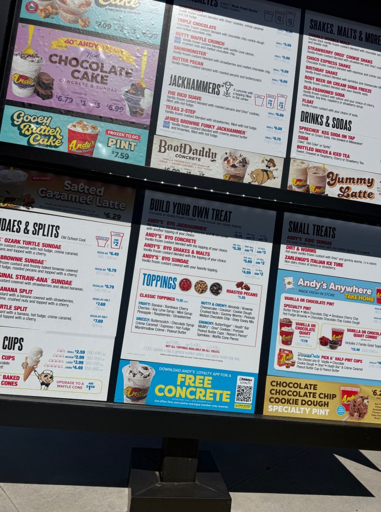 It was an amazing Afternoon to stop by and grab something sweet, and Andy’s definitely delivered. I went with the chocolate cake concrete- and wow, it exceeded expectations. Rich, chocolatey, and perfectly blended, every bite felt like the kind of treat you don’t want to end.